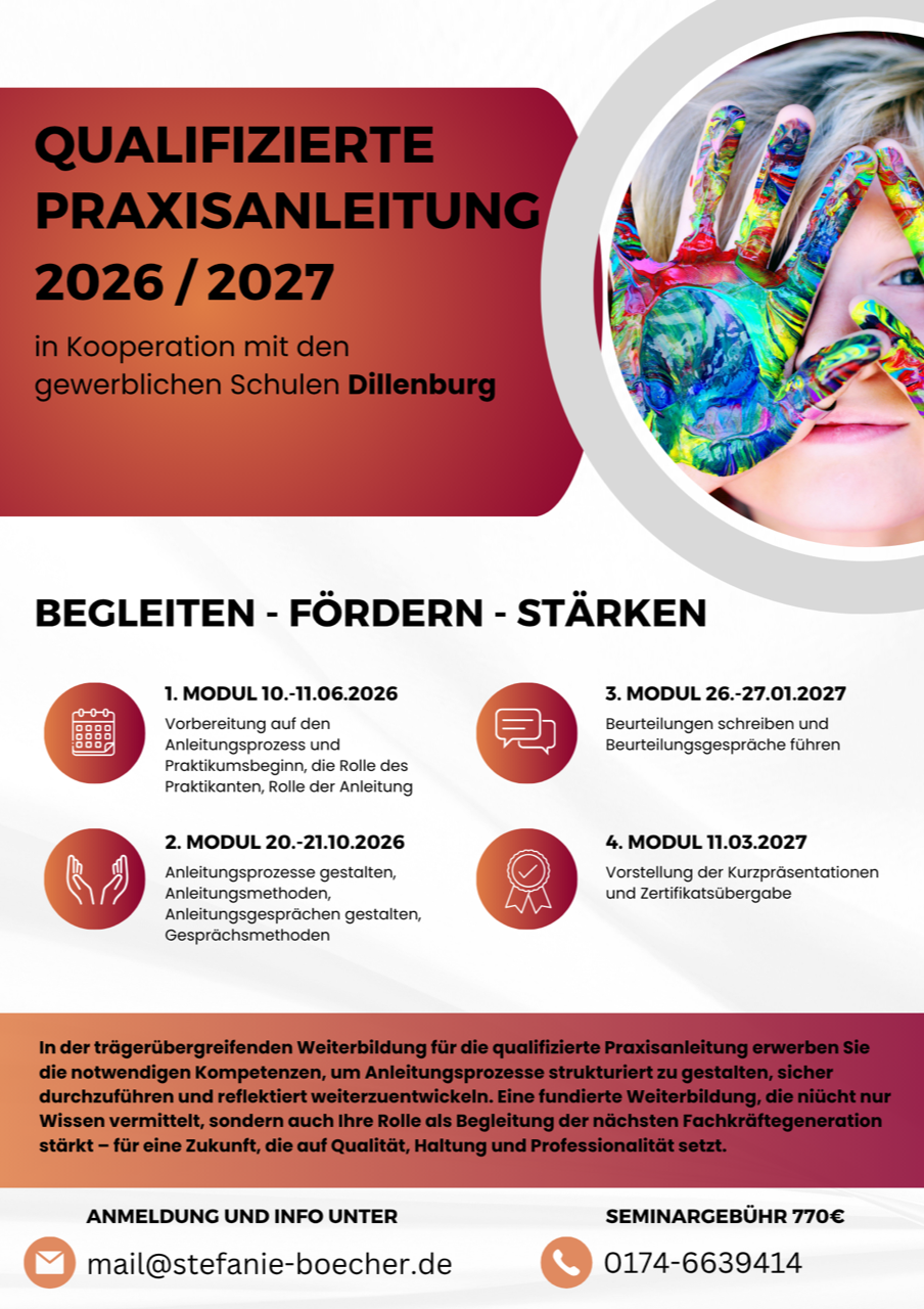 Unsere Qualifizierungsreihe richtet sich an Quereinsteiger ohne pädagogischen Abschluss, die sich fundiertes Wissen und praktische Kompetenzen für die Arbeit in der Kita aneignen möchten. In praxisorientierten Modulen werden zentrale Themen wie kindliche Entwicklung, pädagogische Grundprinzipien, Kommunikation und Konfliktlösung vermittelt. Die Teilnehmenden lernen, Kinder in ihrer Entwicklung wertschätzend zu begleiten und die täglichen Herausforderungen im Kita-Alltag sicher zu meistern. Nach erfolgreich abgeschlossener Weiterbildung (160 UE) erhalten die Teilnehmenden die Berechtigung zur Mitarbeit als Fachkraft in der Kita. Diese Reihe stärkt nicht nur das fachliche Wissen, sondern auch die pädagogische Haltung und das Selbstbewusstsein im Umgang mit Kindern, Eltern und Kollegen und leistet so einen wichtigen Beitrag zur Qualifizierung von Fachkräften.